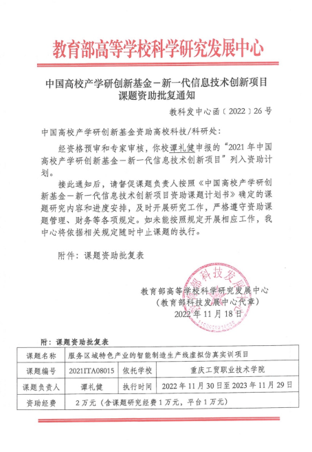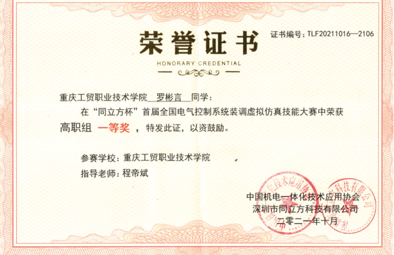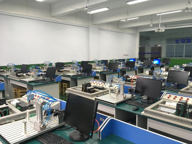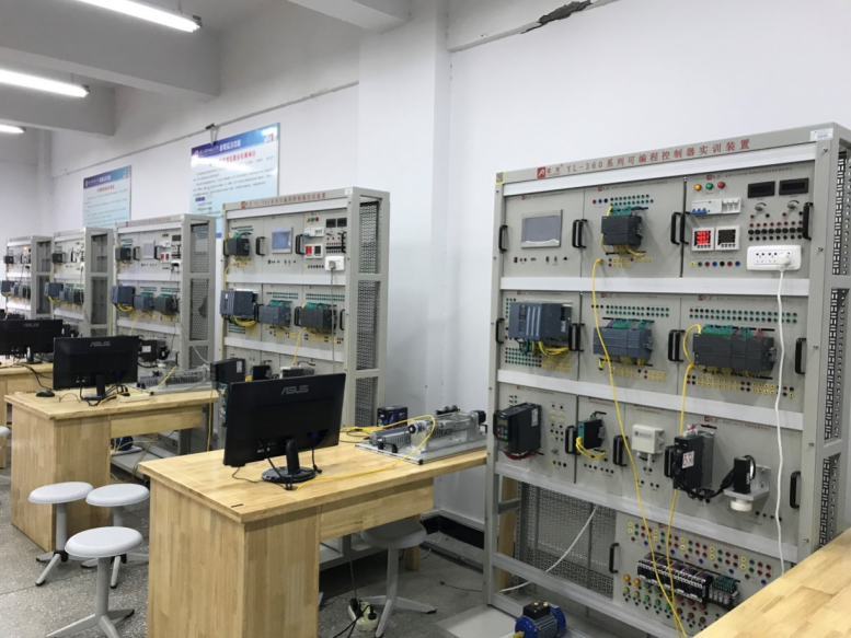 拥有面积5000㎡的机电实训中心和面积1000㎡的智能制造虚拟仿真实训基地,获得三峡水库库区移民技能培训实训基地、中央财政支持高端机械制造国家实训基地、市级示范性虚拟仿真实训基地和工业设计重庆市竞赛选拔基地等称号。包含数字孪生、数控多轴仿真、西门子PLC、工业网络技术、工业机器人生产线等实训室25个,设备资金总额逾2500万元,全部按照工业标准建设,完全能满足员工实训。