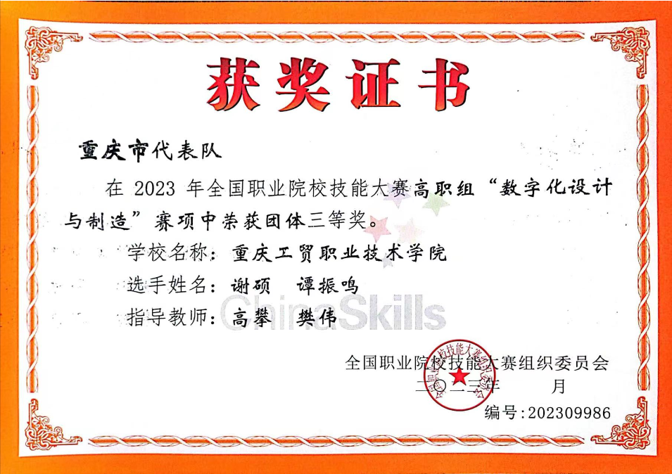 近日,2023年全国职业院校技能大赛高职组“数字化设计与制造”赛项在安徽省圆满落幕。由公司教师高攀、樊伟指导,员工谢硕、谭振鸣组成的竞赛团队在该赛项中荣获团体三等奖。