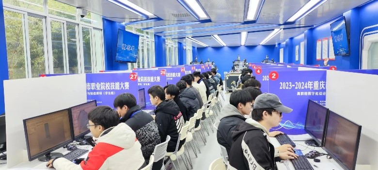 2023年12月19日—22日,由重庆市教育委员会、重庆市经济和信息化委员会、重庆市财政局、重庆市人力资源和社会保障局主办的2023—2024年重庆市职业院校技能大赛高职组数字化设计与制造赛项(员工组)在公司举行,来自全市19所高职院校共36支队伍参加比赛。