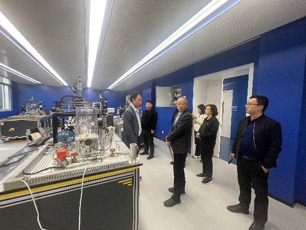 调研中,刘董事长一行实地走访了机电实训中心和虚拟仿真实训基地,详细了解师生的工作学习环境,实训室设备配置以及教学模式等情况。
