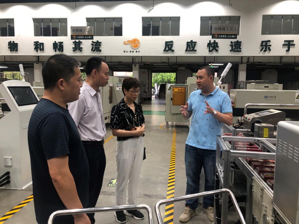 与烟草公司配送中心负责人交流座谈 走访烟草公司配送中心分拣车间