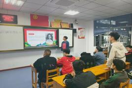 活动开始,由各班团支部书记带领同学们齐唱歌曲《光荣啊,中国共青团》,歌声嘹亮,充满了青春的活力与激情。各团支部书记通过PPT展示、故事分享、播放纪录片和红色短视频等形式,带领同学们回望革命历史,学习英雄楷模的光辉事迹,一张张烈士图片在幻灯片上放映着,一段段英勇事迹在屏幕上播放着,使同学们深刻感受到了革命先烈热爱祖国、忠于人民、无私奉献、敢于牺牲的宝贵精神。同时,各团支部书记组织同学们围绕“红色革命故事”展开激烈讨论,“董存瑞同志,李大钊同志,周恩来总理……”同学们踊跃地分享自己对革命精神的理解,深情地诉说对革命烈士的感激与怀念。