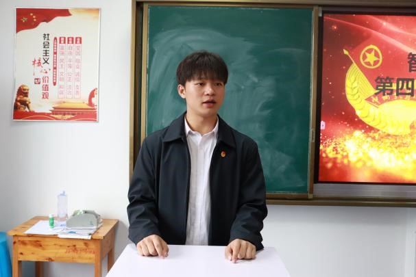 公司学办副主任、团总支副书记唐力仪致辞 邹博同学向大会作报告