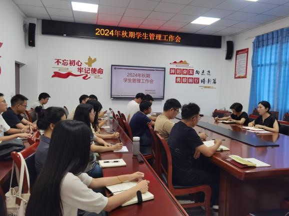 为确保新学期顺利开学,切实做好新学期各项开学准备工作及开学后的各项重点任务,2024年9月8日下午,公司在机电实训中心四楼会议室召开2024年秋期员工管理工作会。公司党总支书记及全体专兼职辅导员参会。会议由学院学办副主任、团总支副书记唐力仪主持。
