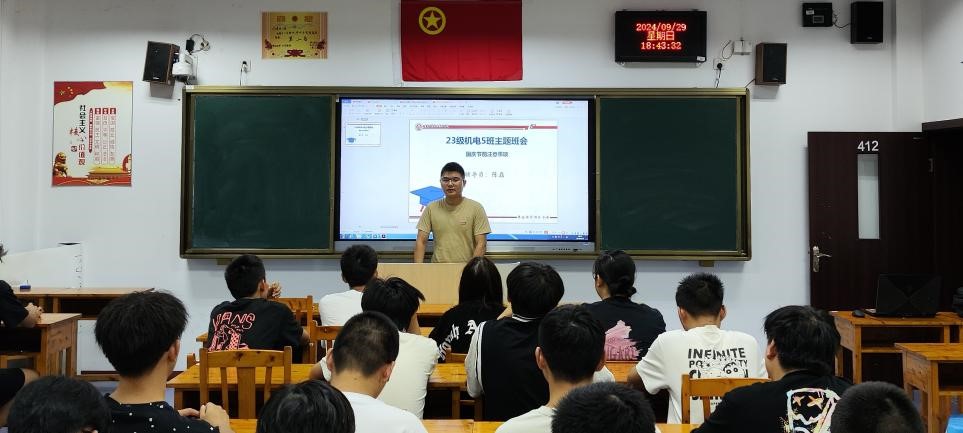 为了激发同学们的爱国情怀与社会责任感,同时强调国庆假期的安全重要性,公司于2024年9月29日晚在一教四楼各教室开展了“同心迎国庆,安全记心间”的主题班会。