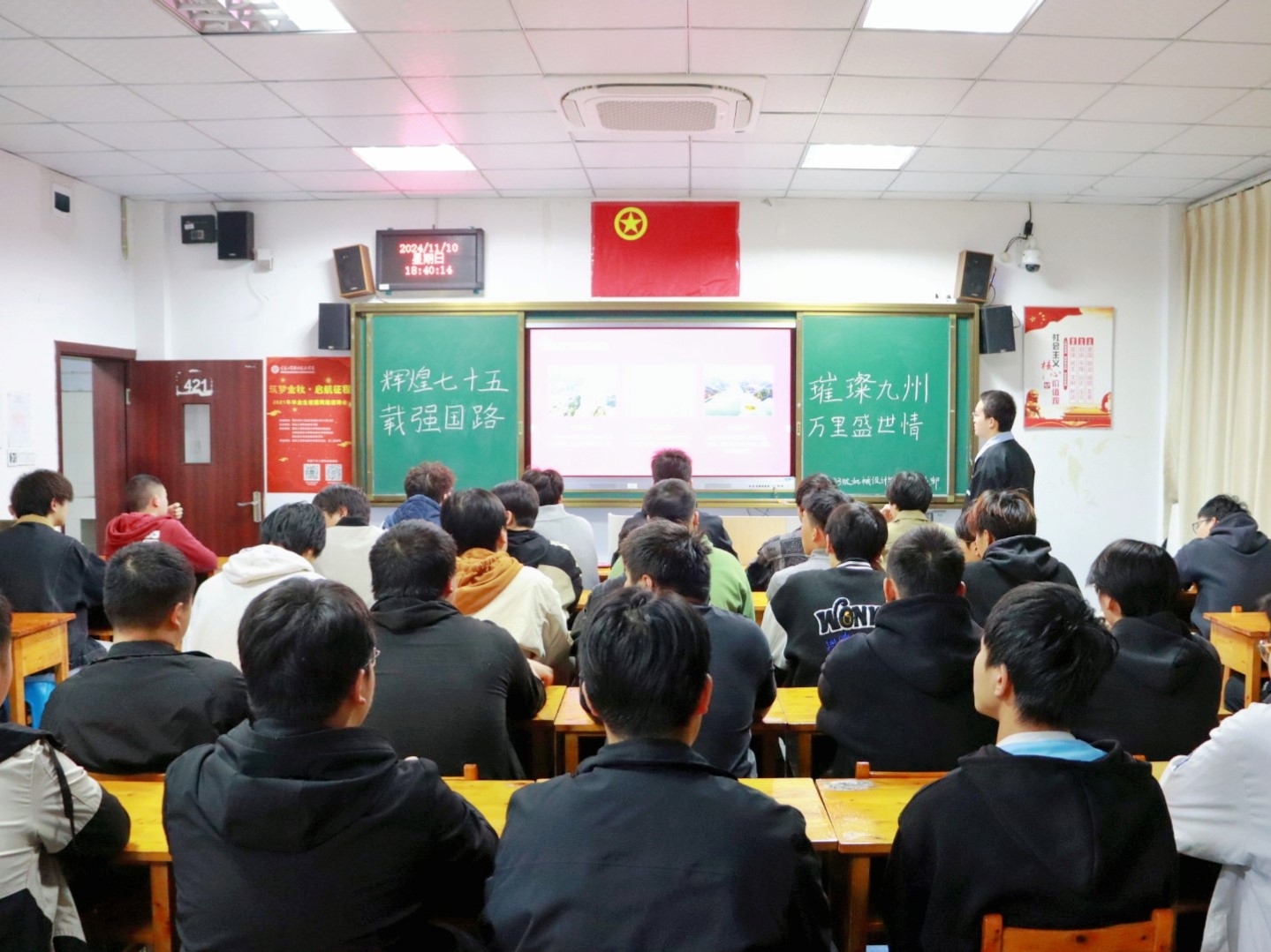 2024年,中华人民共和国成立75周年。为促使公司团员和青年深刻领会中国共产党的领导是中国特色社会主义制度最本质的特征与最大优势,以激发同学们的爱国之情、强国之志、报国之行,培养大家社会责任感与历史使命感,公司于2024年11月10日晚在一教四楼各教室开展“辉煌七十五载强国路,璀璨九州万里盛世情”的主题团日活动。