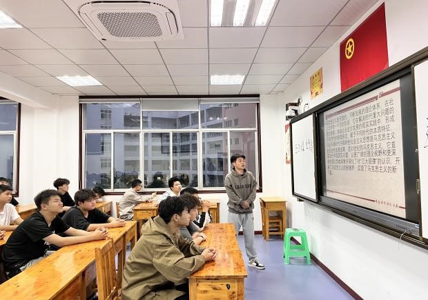 学习会上,各班团支书带领全体同学共同学习了《习近平新时代中国特色社会主义思想的理论逻辑》,并结合PPT向同学们介绍了习近平新时代中国特色社会主义思想的理论特色、习近平新时代中国特色社会主义思想的重大意义、伟大的时代呼唤伟大的思想,伟大的思想指引伟大的征程等三个方面的内容,使同学们充分认识到习近平新时代中国特色社会主义思想是全党全国人民为实现中华民族伟大复兴而奋斗的行动指南。