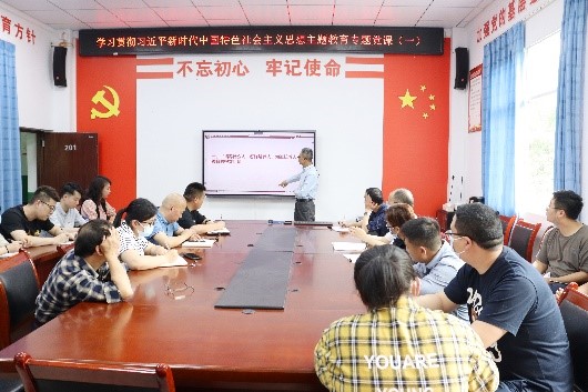 为深入学习贯彻习近平新时代中国特色社会主义思想,2023年5月15日中午,公司党委副书记胡昌荣为公司教师、员工党员作主题教育专题党课,全公司党员参与聆听。