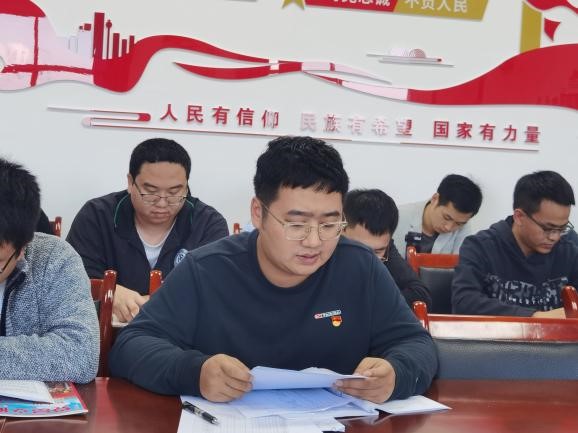 公司副经理赵钰领学 公司员工党支部书记唐力仪主持